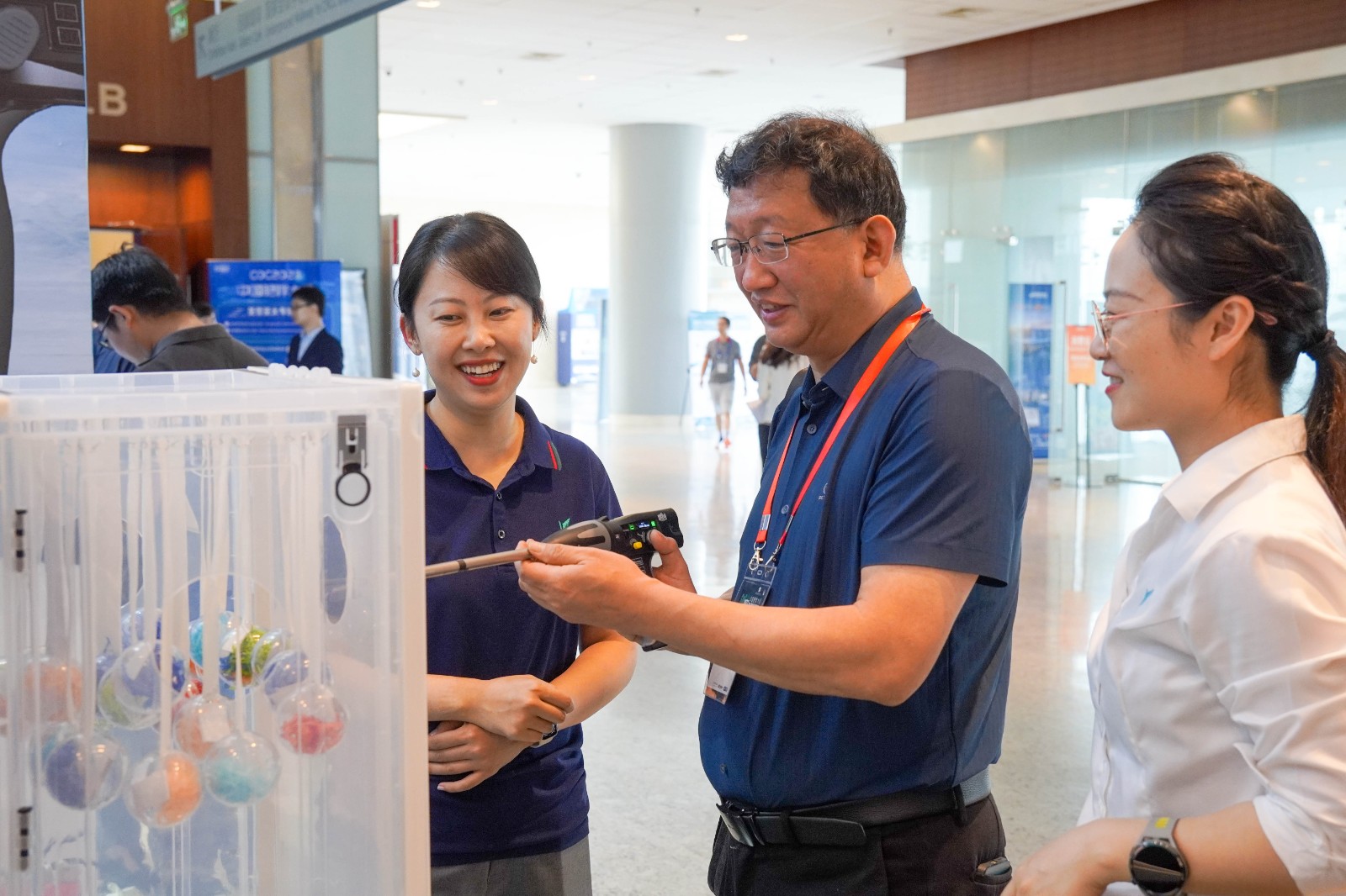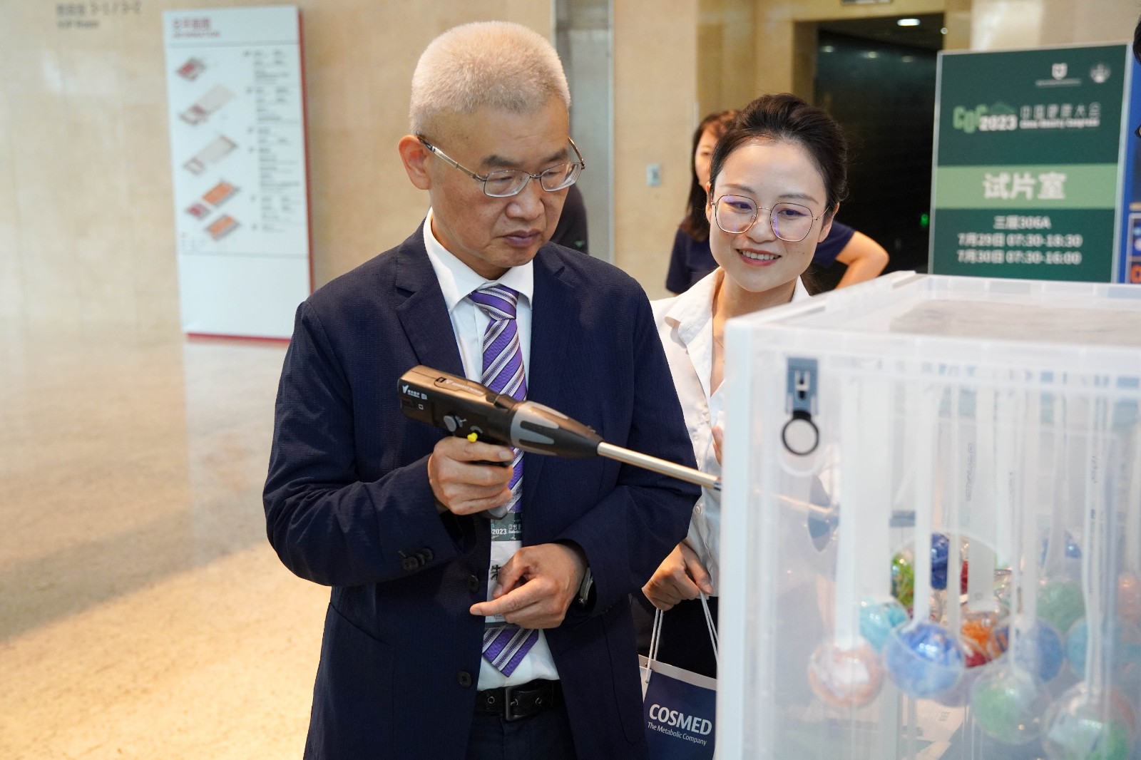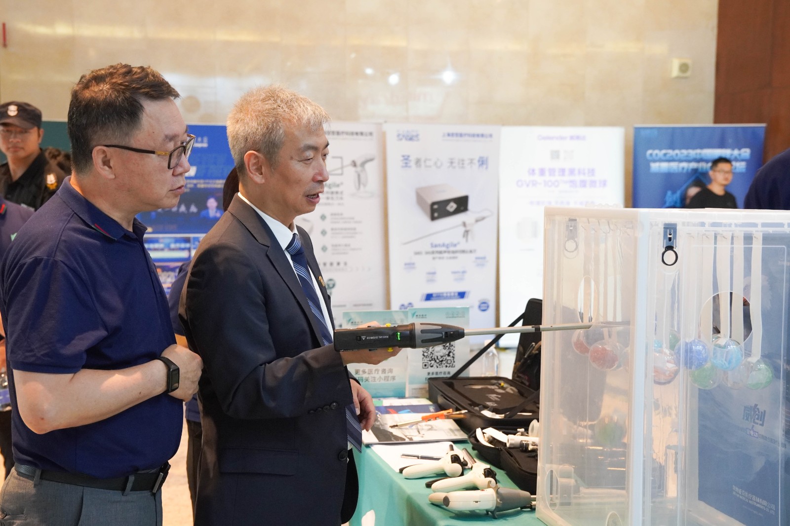 威克醫(yī)療單孔多通道系列產(chǎn)品在展臺(tái)上吸引了眾多專家的目光,紛紛上手體驗(yàn)。