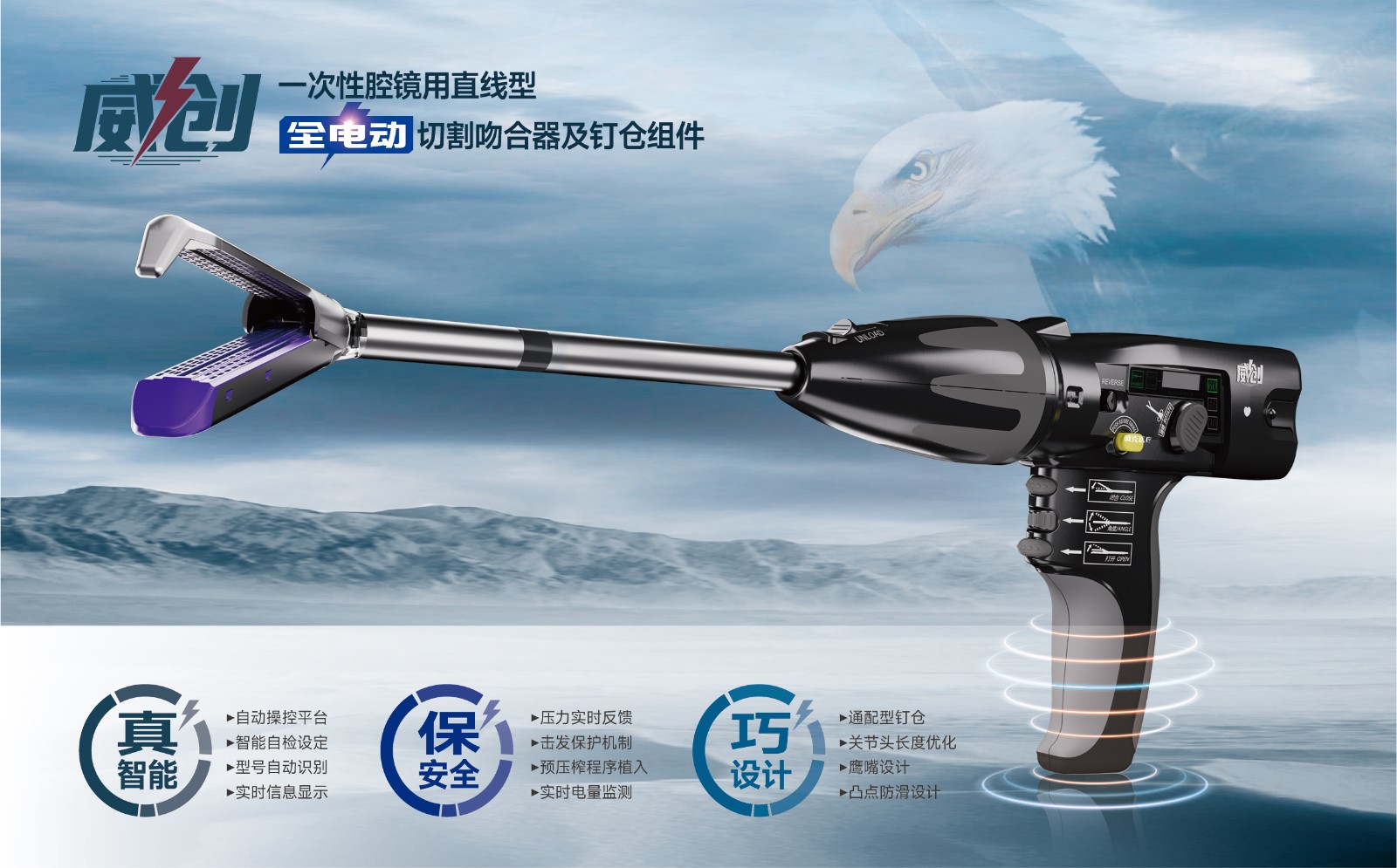 “威創(chuàng)”是一款全球獨(dú)創(chuàng)的具有自主知識(shí)產(chǎn)權(quán)的全電動(dòng)智能腔鏡切割吻合器。它搭載了全新智能芯片,手術(shù)時(shí)可以實(shí)時(shí)反饋擊發(fā)阻力,使術(shù)者的操作更加游刃有余。同時(shí),“威創(chuàng)”還具備智能自檢設(shè)定、型號(hào)自動(dòng)識(shí)別和實(shí)時(shí)信息顯示等功能,為術(shù)者帶來了全新的人機(jī)交互體驗(yàn)。在安全性方面,“威創(chuàng)”具備擊發(fā)保護(hù)機(jī)制和預(yù)壓榨程序植入等卓越的安全保護(hù)機(jī)制,這使得切割吻合和成釘效果更加平穩(wěn),并大大提高了手術(shù)的安全性和效率。